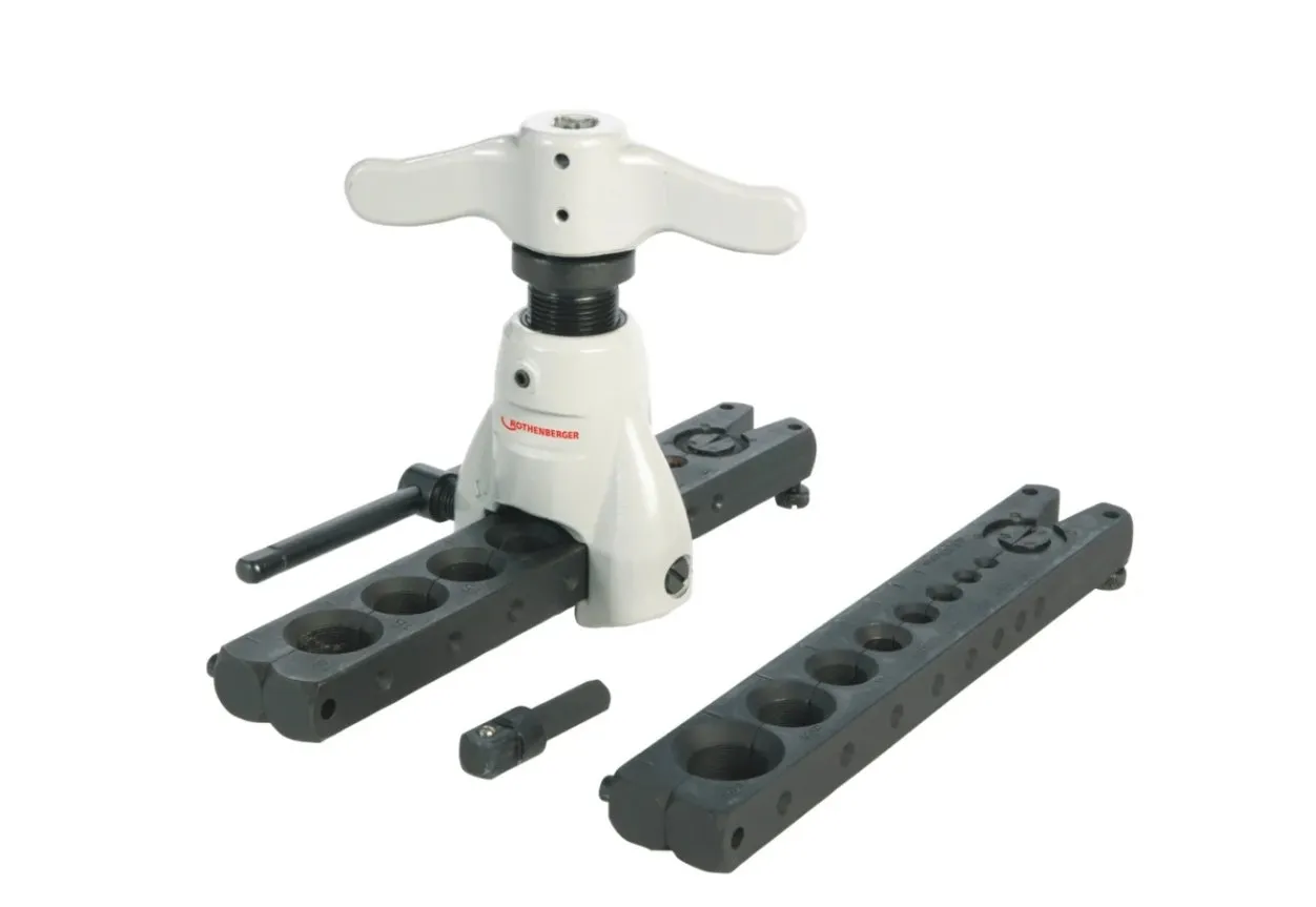 Excentrická sedlovačka je ruční nástroj určený pro precizní vytváření náběhů (bördelů) na měděných trubkách podle normy DIN EN 12735-1. Umožňuje kontrolované tvarování konce trubky bez rizika prasknutí, deformace nebo snížení tloušťky stěny. Díky robustní konstrukci a přesnému vedení trubky je práce bezpečná, rychlá a opakovatelná. Zařízení je vhodné pro instalatéry, techniky v oblasti klimatizace a chlazení, i pro servisní použití.