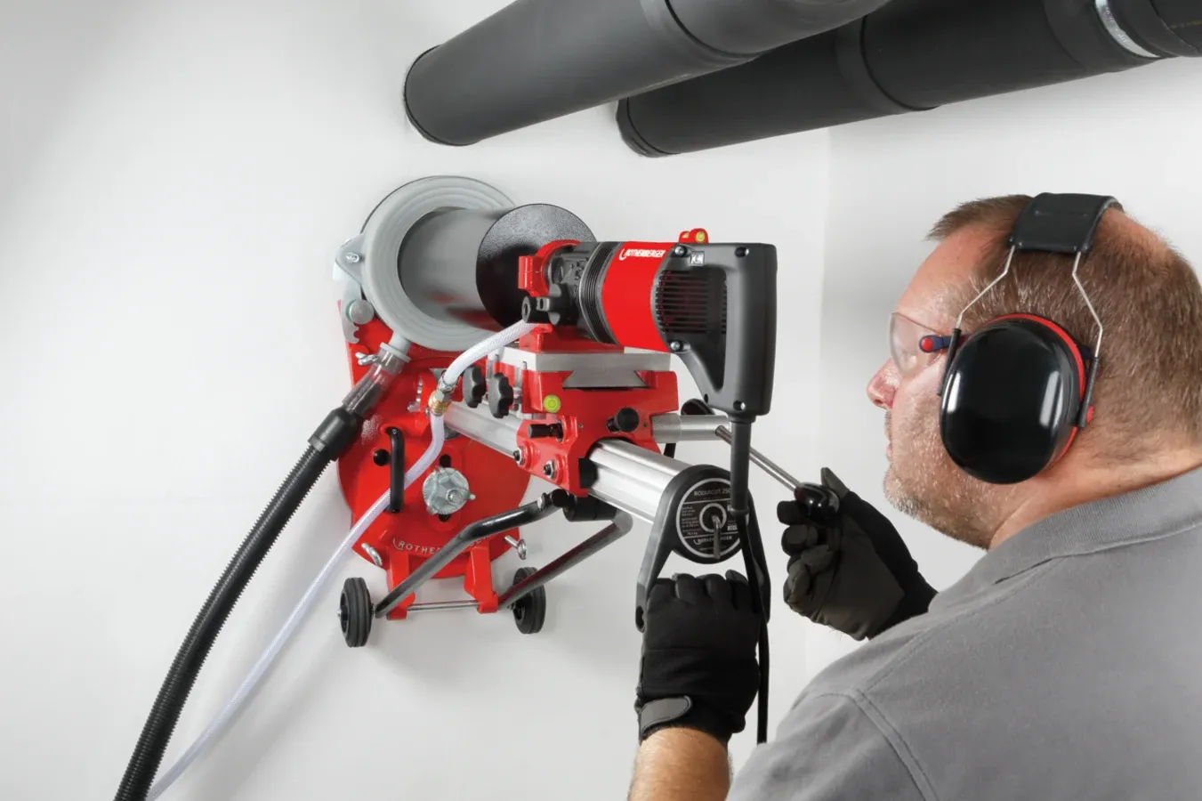 Diamantový vrtací systém RODIACUT 250 / RODIADRILL 200 je profesionální elektrické zařízení určené pro jádrové vrtání do betonu (včetně armovaného) a zdiva. Kombinuje možnosti stacionárního i ručního vrtání – mokrého i suchého – v jednom kompaktním systému. Díky lehké konstrukci, přesnému nastavení stojanu a integrovaným transportním kolečkům je ideální pro efektivní práci jednou osobou na stavbě i při montážích.