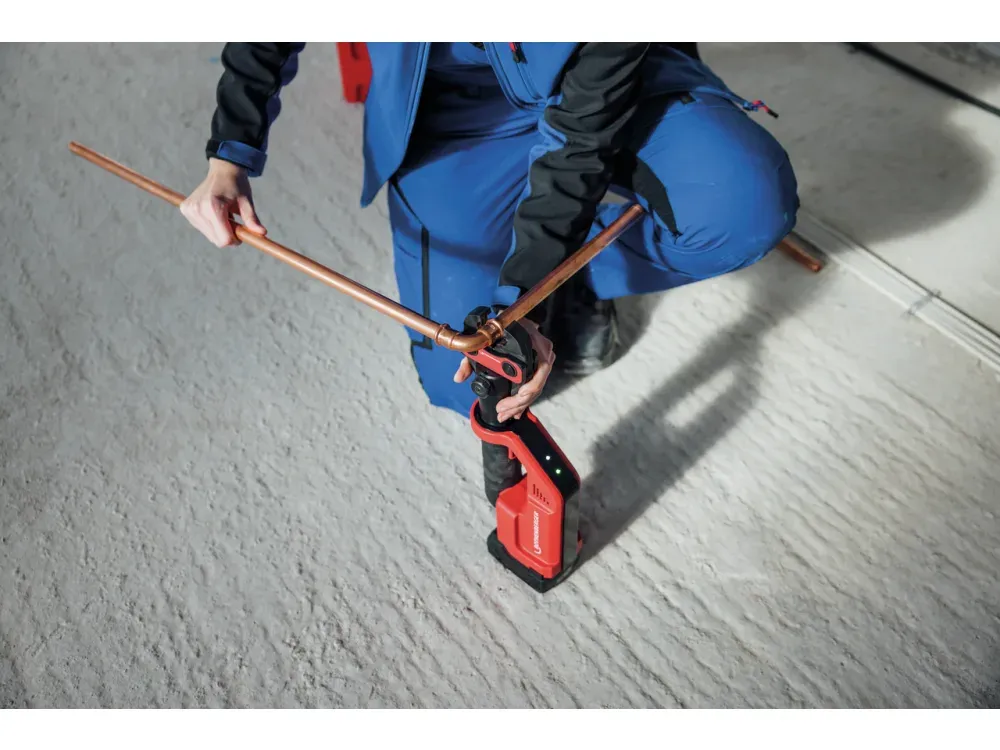 ROMAX COMPACT III je chytrá elektrohydraulická lisovací jednotka určená pro systémové lisování fitinek do Ø 35 mm (kov) a Ø 40 mm (plast). Díky kompaktní konstrukci, nízké hmotnosti 2,5 kg a délce 34 cm je ideální pro práci v těsných prostorách i nad hlavou.