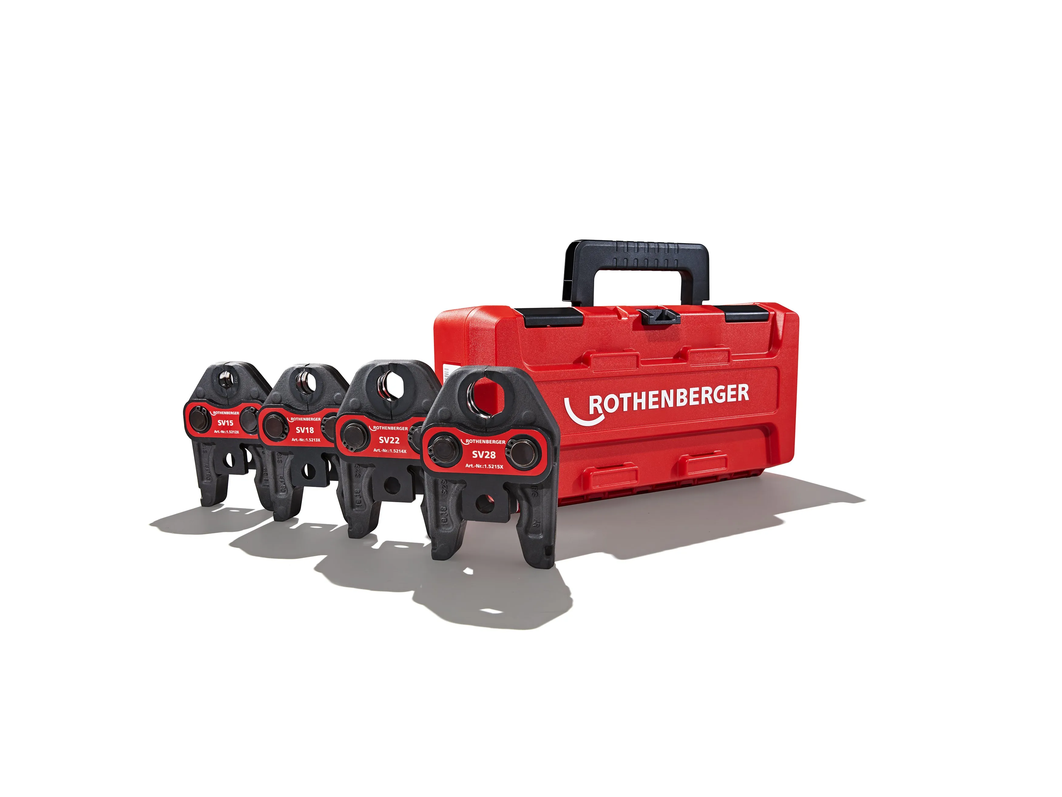 ROTHENBERGER lisovací čelisti v nové kvalitě materiálu i zhotovení, pro systémově konformní lisování fitinků do ø 50 mm (plasty/vícevrstvé trubky) resp. do ø 54 mm (kovy).